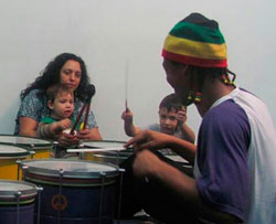 "El derecho al juego a la recreación al acceso a los bienes culturales , dos pequeños compartiendo con su mamá este momento especial a pura música" Agradecemos las fotos a la familia y a Tambores Rufando. |