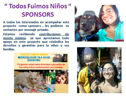 Programa de Radio que se emitirá por Radio Wu http://wuradio.com.ar/ todos los miércoles de 18 a 19 horas sobre los derechos y garantías de los niños, niñas y adolescentes (NNyA) y las familias a partir del 16 de marzo.